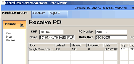 Once your new inventory has been delivered, you must update the CIM database by receiving the Purchase Order.